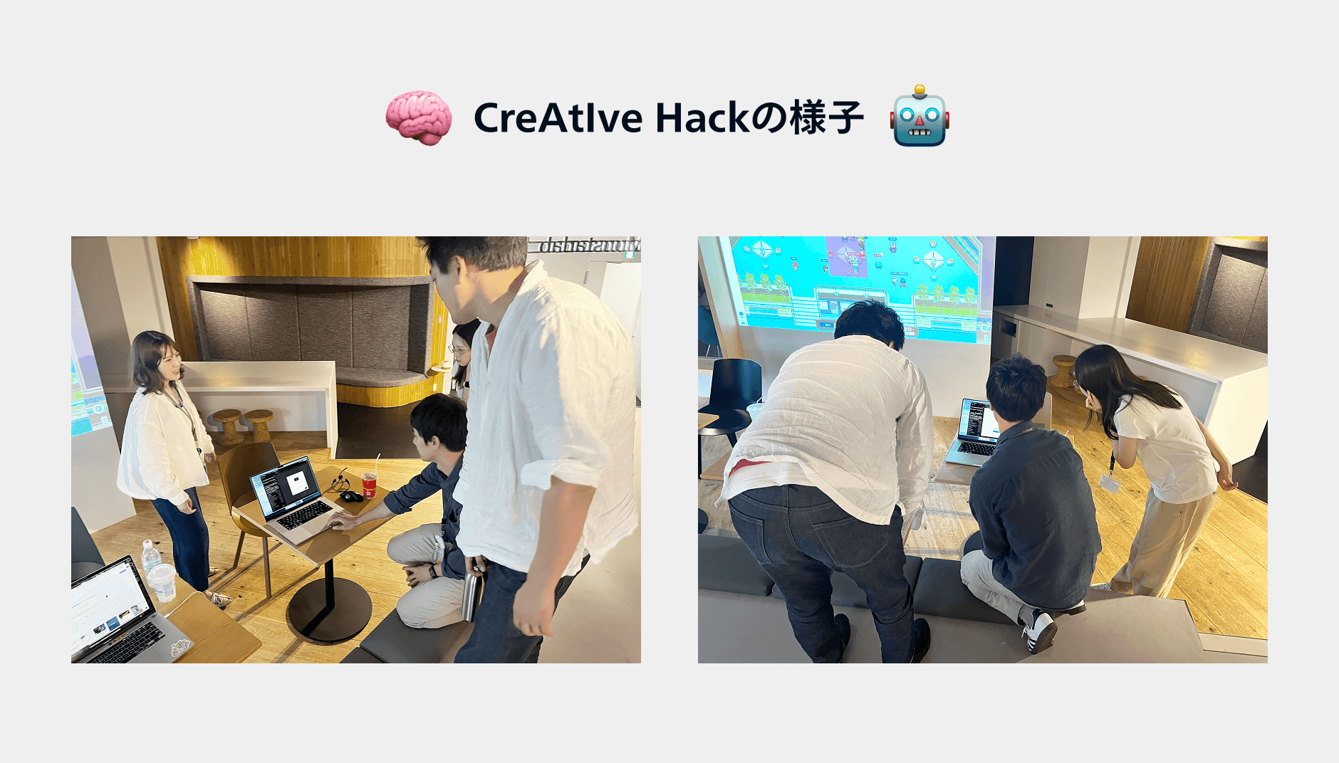 私も入社して間もなく「生成AIハッカソン(CreAtIve Hack)」のイベントに参加しました。生成AIを扱うのは初めてで、知識もあまりありませんでしたが、参加してみると新しい発見ばかり。プロンプトの難しさやAIの種類ごとの違い、「生成AIでこんなことまでできるんだ」という驚きと、アイデアの大切さなど、多くの学びがあり、楽しみながらAIに触れることができました。知識が浅い状態でも、メンバーと一緒に挑戦していけるので、貴重な機会だと感じました。